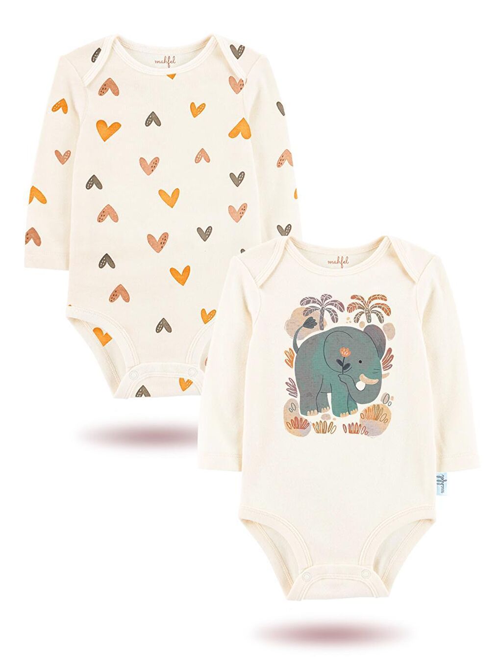 بادی دکمهدار نوزادی طرح فیل، دو تکه، آستین بلند، یونیسکس، سفید کمرنگ