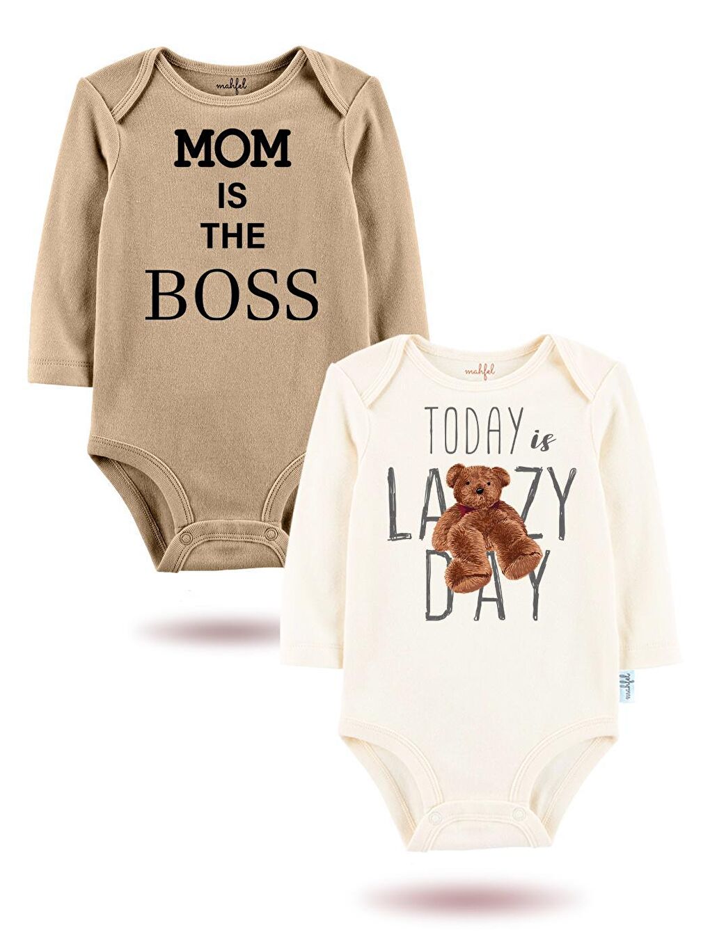 بادی دکمهدار نوزادی دو تکه طرحدار آستین بلند یونیسکس لیلا با عنوان «امروز تنبلی»