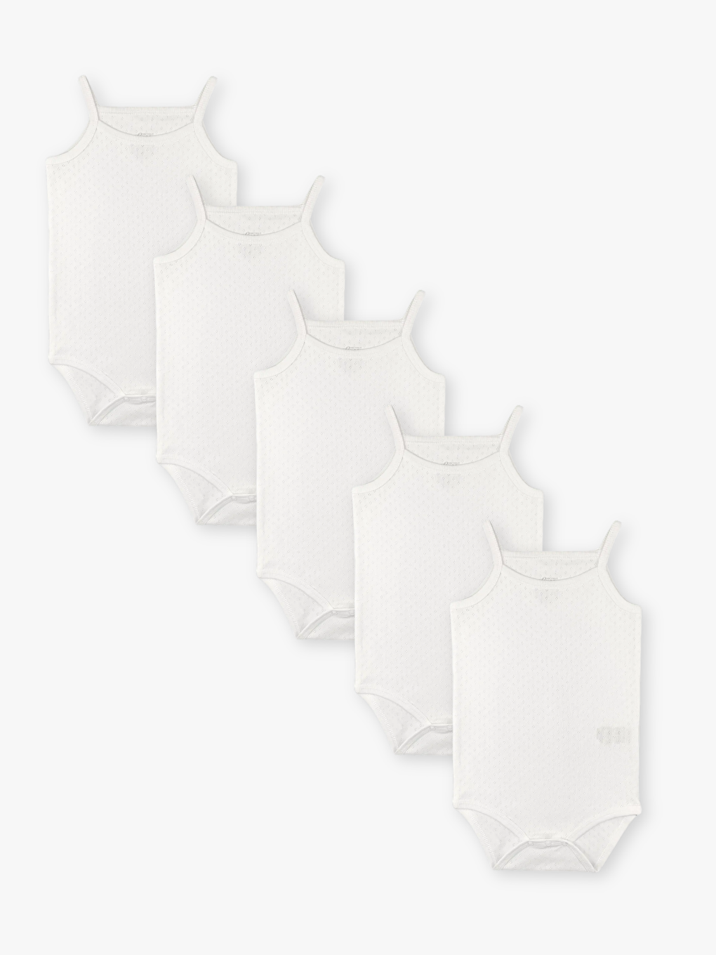بادی دکمهدار جاکارد یقه مربعی، نخی، سفید صدفی، مخصوص دختران نوزاد (بسته ۵ عددی) (نوزاد تا ۵ سال)