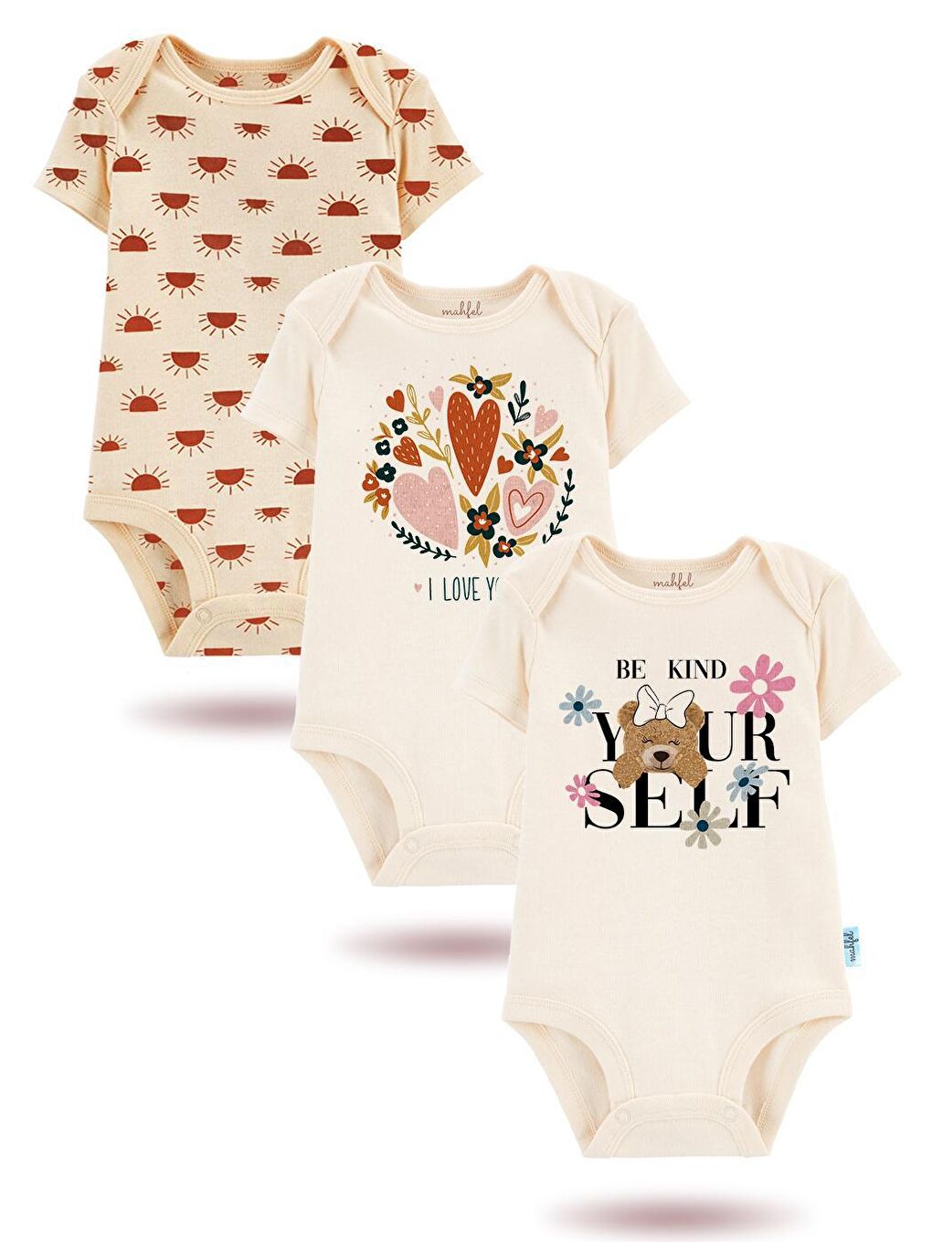 بدنه یونیسکس بچه گانه اسنپ آستین کوتاه با چاپ ارگانیک 3 تکه اکرو