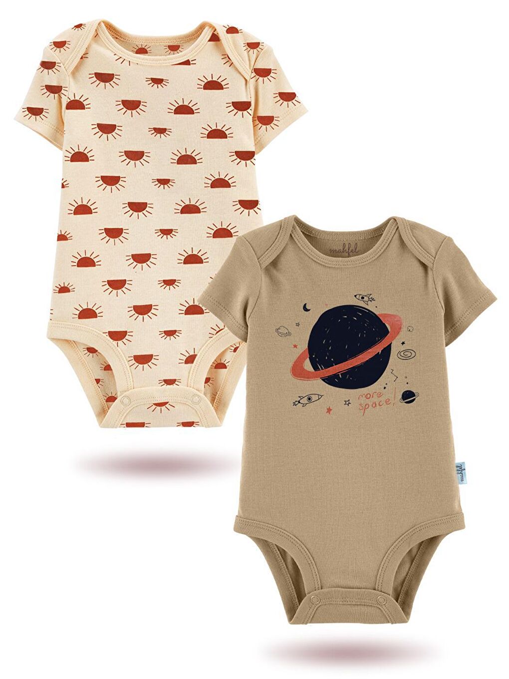 بدنه بادی اسنپ نوزادی یونیسکس با چاپ ارگانیک 2 بسته قهوه ای