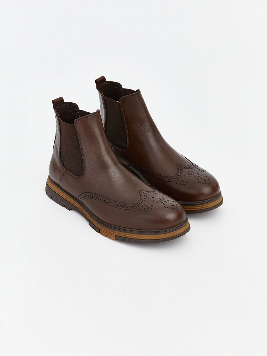 این چکمه مردانه گلدوزی شده با طرح بروگ، با پنلهای لاستیکی در طرفین و یک زبانه کشی در پشت طراحی شده است. کفی ضخیمی دارد.