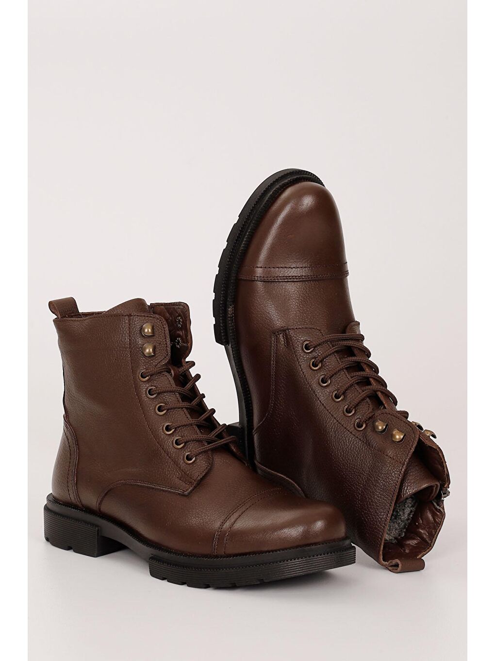 چکمه مردانه قهوهای بنددار زیپدار چرم اصل ۰۱۳۲۱