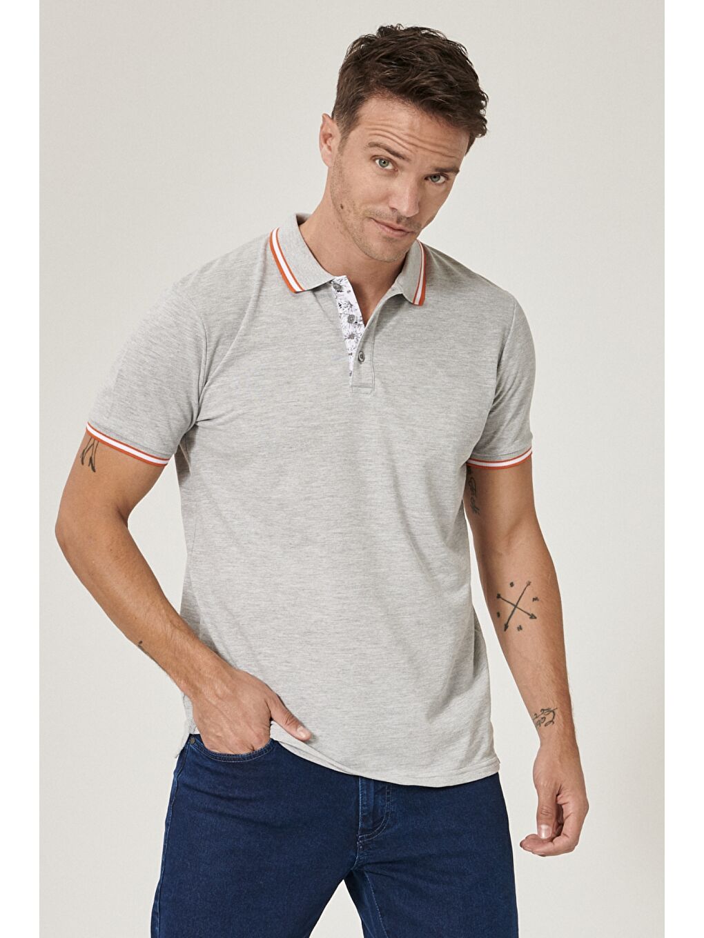 تیشرت یقهدار مردانه خاکستری، بدون جیب، اسلیم فیت، ساده