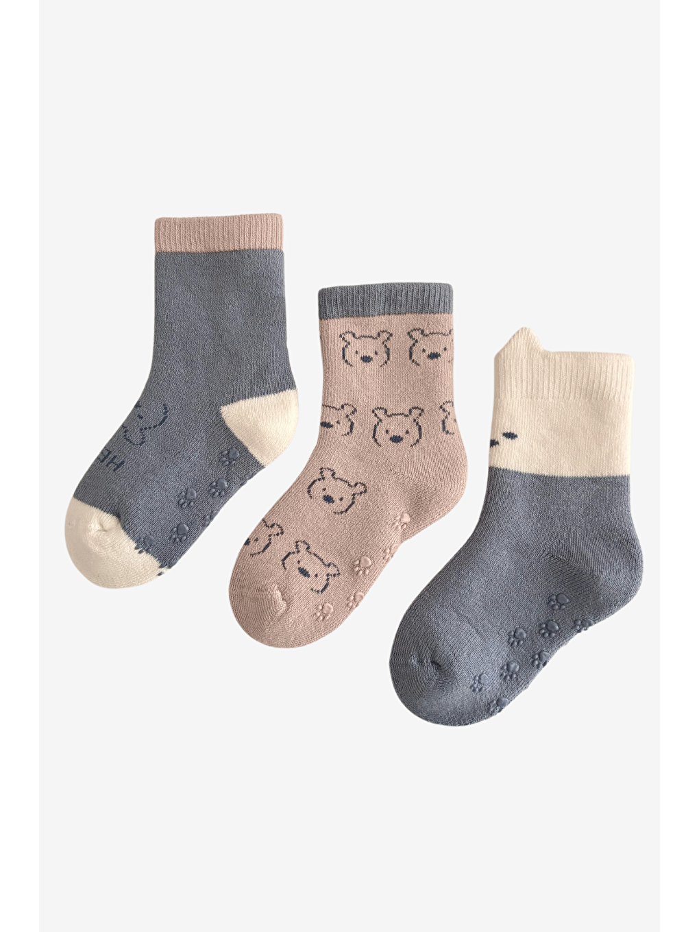 جوراب‌های تری طرح‌دار خرس عروسکی بامزه آبی نوزادی بسته ۳ عددی