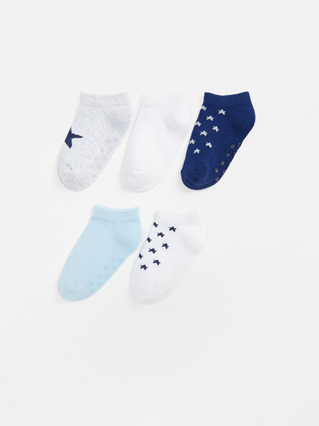 این ست پنج جفتی پاپوش نوزادی پسرانه شامل طرحهای ستارهای و ساده است. برخی از سایزها دارای کفی ضد لغزش هستند.
