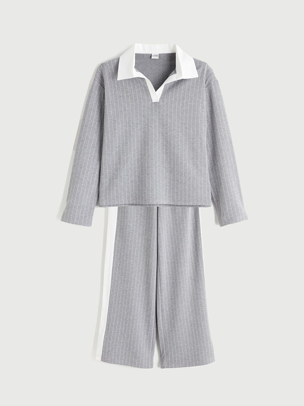 سویشرت و جوراب شلواری دخترانه یقه گرد خاکستری راه راه