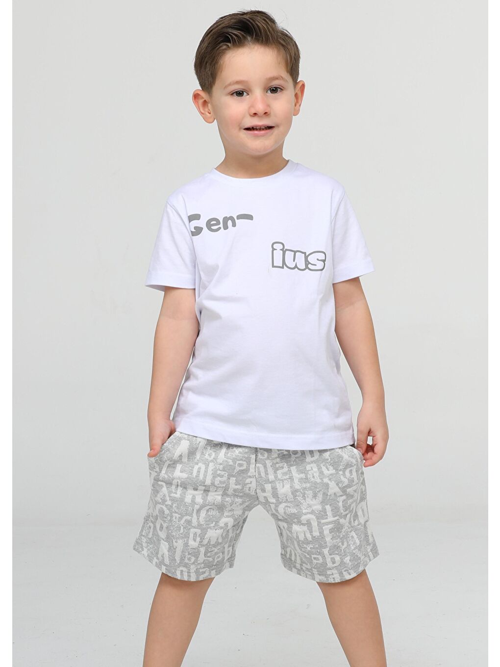 ست شورت جنیوس ساخته شده از پارچه های نخی “طراحی هوشمندانه که انرژی کودکان را برآورده می کند: شورت طرح دار و جیب دار ژاکارد، یک ست شورت کودکانه منحصر به فرد که راحتی و سبکی را در کنار هم برای کاشفان کوچک ارائه می دهد!” 92% پنبه 8% الاستین
