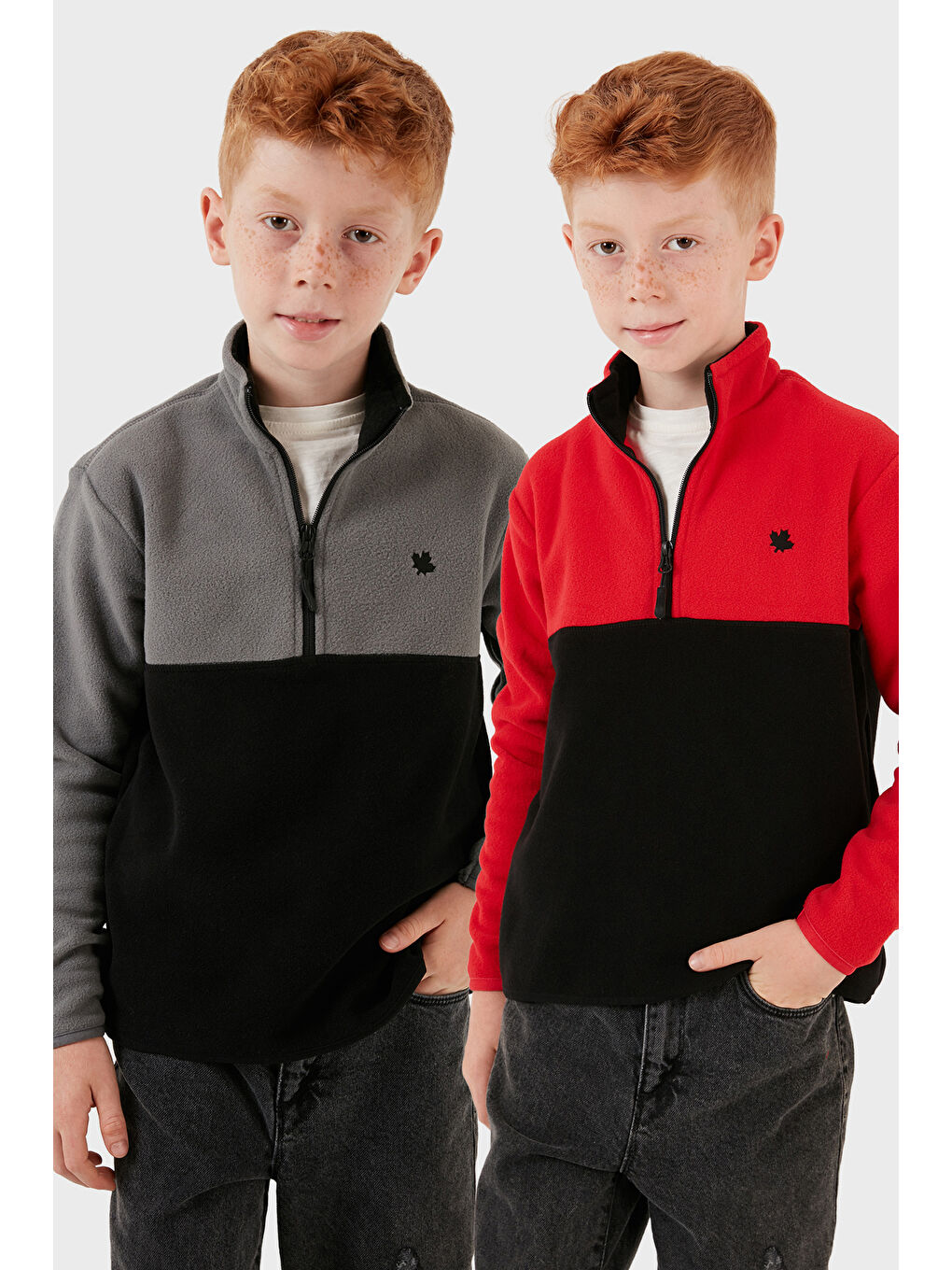 یقه ایستاده رنگی نیم زیپ خاکستری بافت نرم، بسته ۲ عددی، مدل Polar 5905004S2