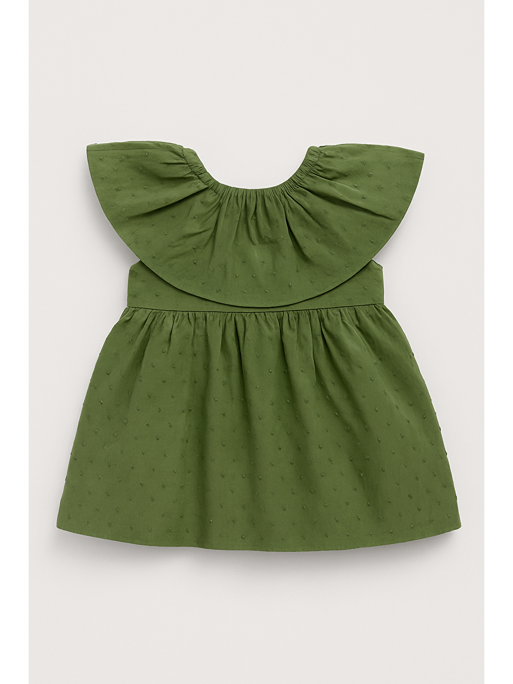 این لباس دخترانه خاکی رنگ که از پارچه نخی ژاکارد با بافت نرم ساخته شده است، با یقه چیندار پهن خود، ظرافتی ساده را به نمایش میگذارد. این مدل با طراحی مینیمالیستی خود، به راحتی میتواند هم روزانه و هم برای مناسبتهای خاص پوشیده شود و ساختار پنبهای قابل تنفس آن، در ماههای تابستان خنکی را به ارمغان میآورد. جزئیات چیندار شانه به شانه، حرکتی برازنده به لباس میبخشد، در حالی که سطح بافتدار آن ظاهری متمایز ایجاد میکند. گزینهای با رنگ طبیعی برای خانمهای شیکپوش.