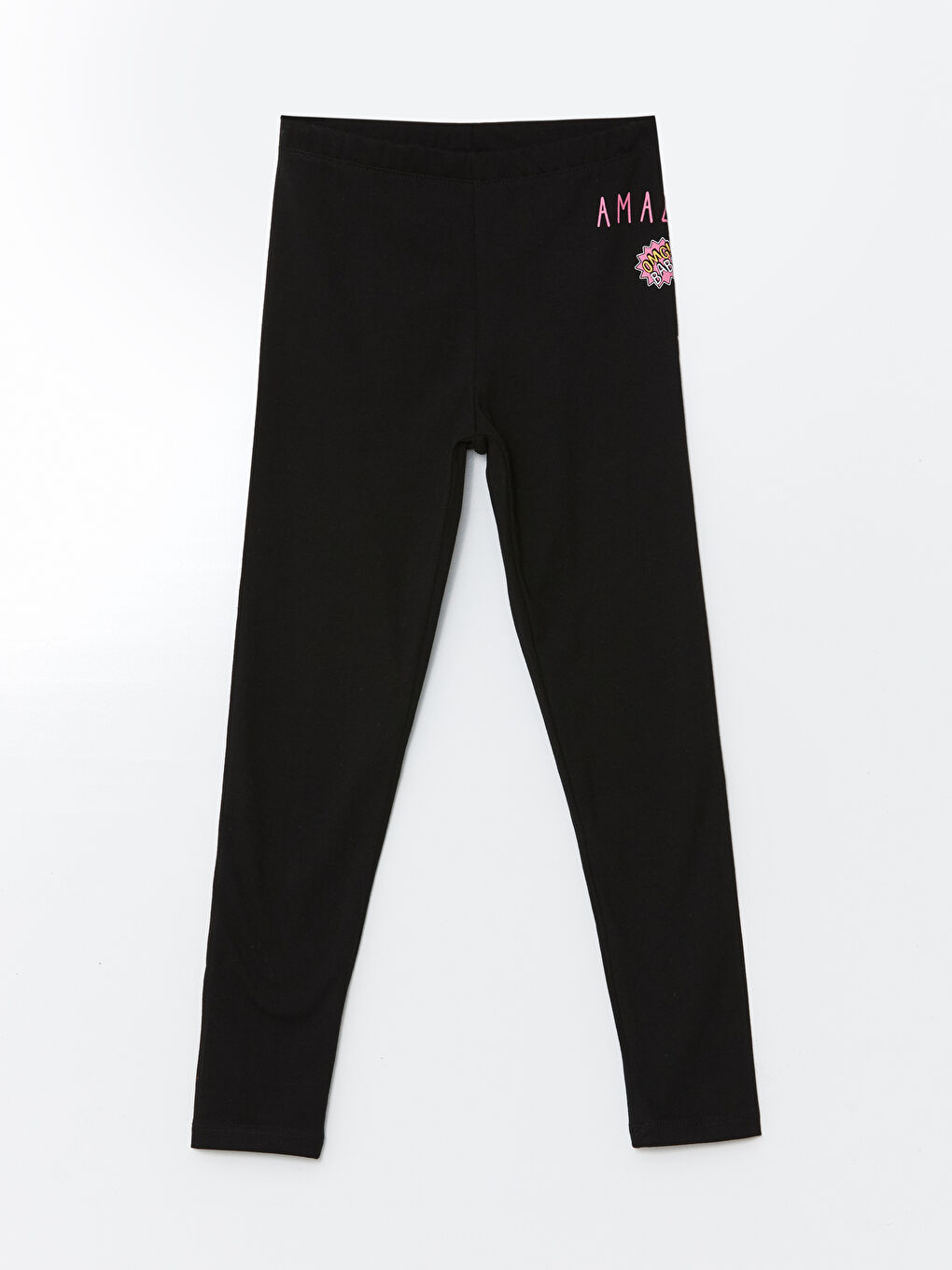 این شلوار لگ دخترانه دارای کمر کشی و جزئیات چاپی است و از پارچه جرسی با الیاف پنبه‌ای مرغوب ساخته شده است.
