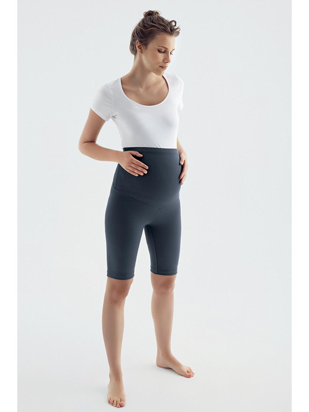 ساق بند بارداری زنانه با کمر کشی و قابلیت تنظیم ارتفاع تا زانو از جنس آنتراسیت مخصوص دوچرخهسواری، مدل F13