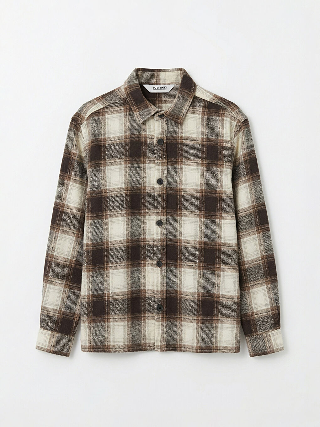 پیراهن چهارخانه قهوه‌ای طرح چوب‌بری پسرانه