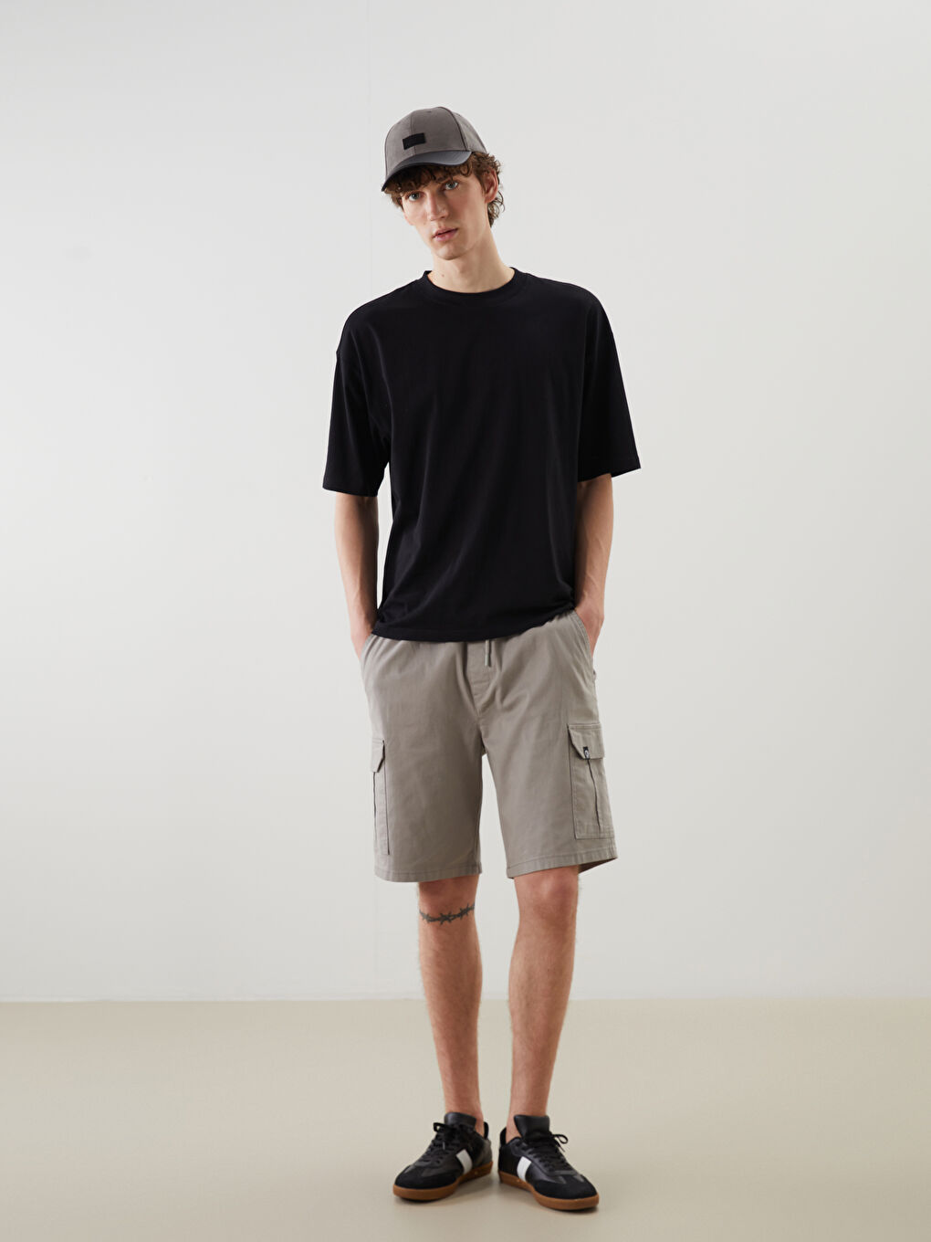 شلوارک مردانه گاباردین خاکستری استاندارد فیت مدل Cargo