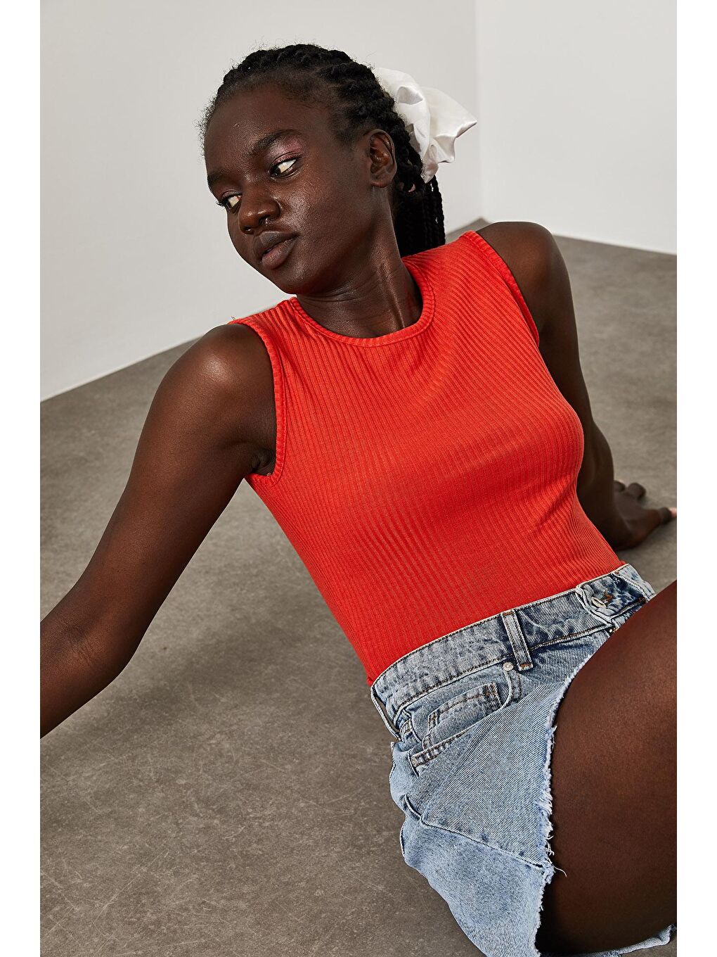 دستان خود را روی کمر خود قرار دهید. نقطه ای که دست شما در آن قرار دارد، نقطه کمر است. دور کمر خود را از آن نقطه اندازه بگیرید.4. طول داخلی پا ( قد شلوار )