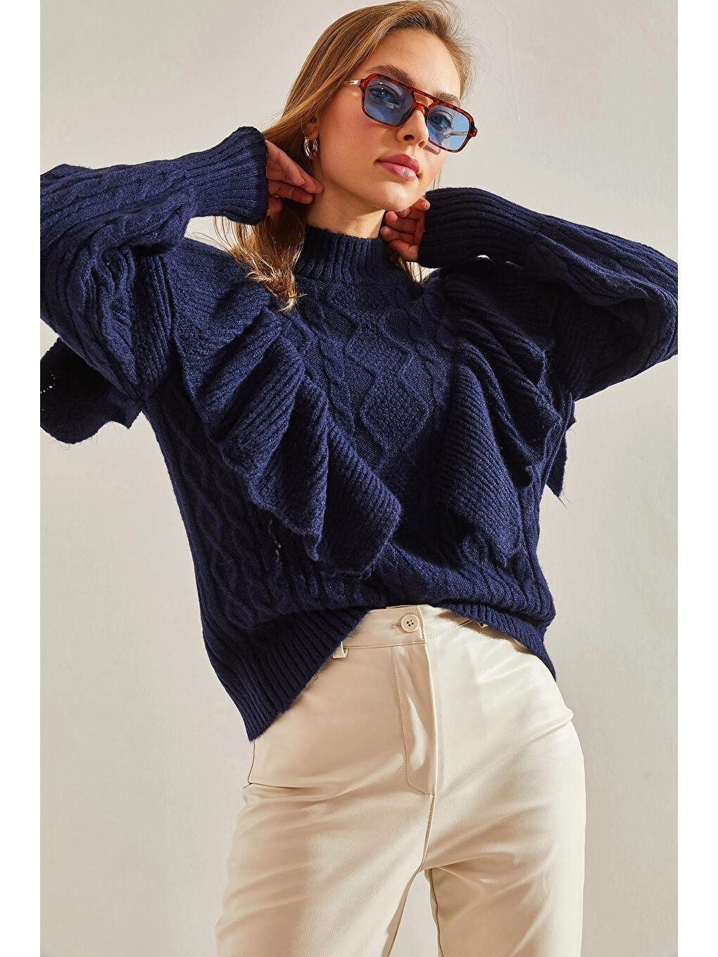 اندازههای مدل: قد: 175، سینه: 88، دور کمر: 62، باسن: 90. سایز روی مدل اندازه استاندارد است.