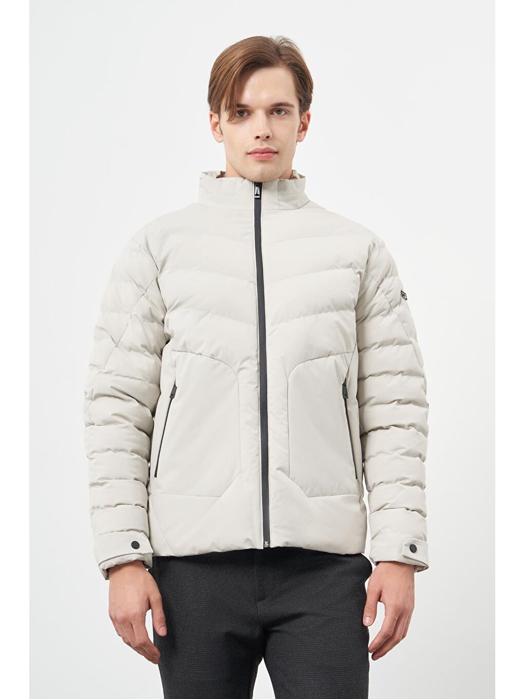 کاپشن کلاسیک برش باریک جذب یقه حکیم پرشده رنگ سنگ بژ 1007245153