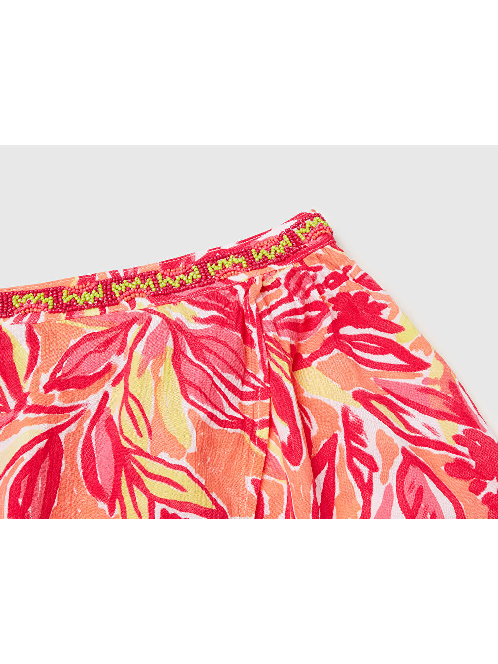 دامن گشاد نامتقارن کمری الاستیک با طرح نارنجی دخترانه 100% ویسکوز