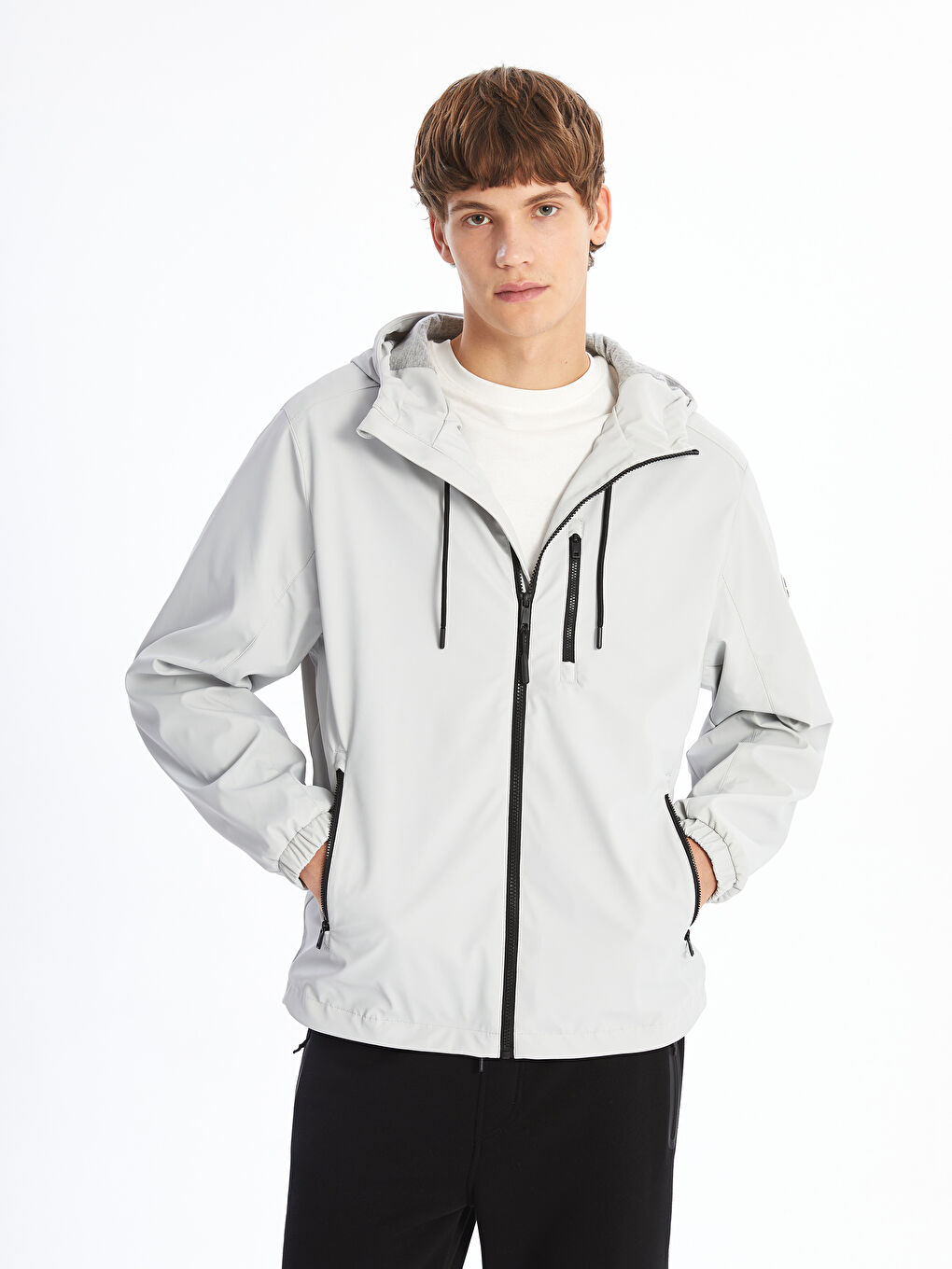 Gri Standart Kalıp Kapüşonlu Erkek İnce Mont