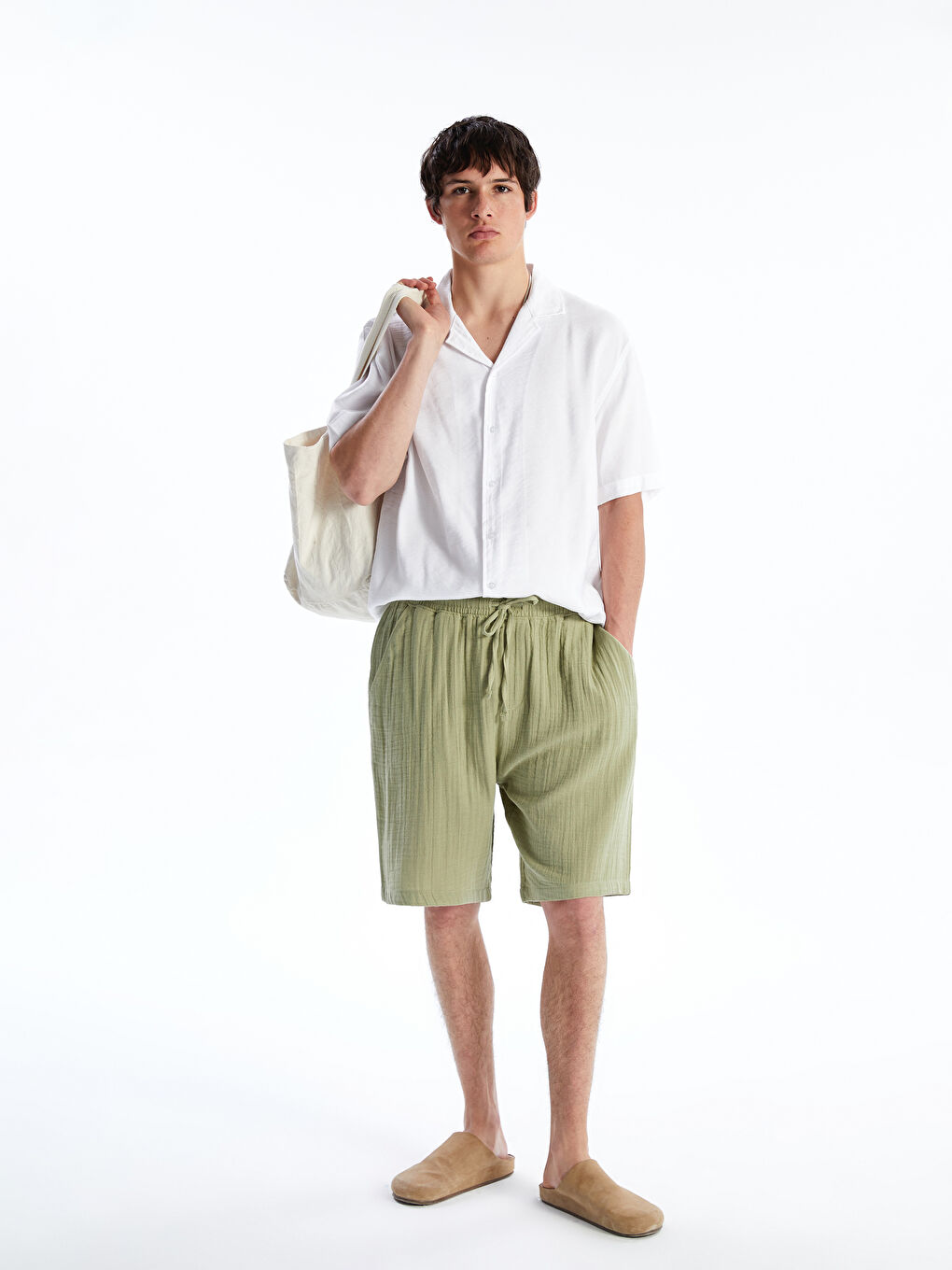 شلوارک مردانه موسلین با تناسب ریلکس خاکی