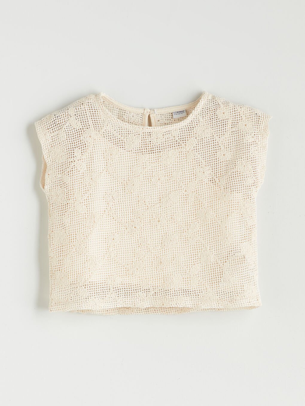بلوز دخترانه توری یقه ای اکرو با جزئیات