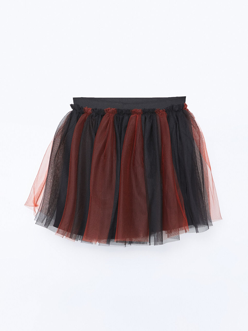 مشخصات محصول: این دامن دخترانه با بند کش دار از پارچه توری با پنل های عمودی ساخته شده است. دارای طراحی کوتاه و جمع آوری شده است.