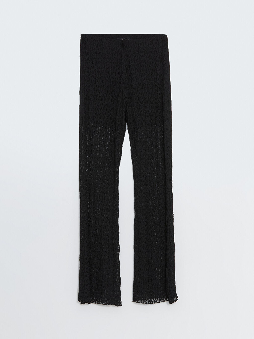 شلوار کمر کش دار از پارچه توری ساخته شده است. با بافت منحصر به فرد و طراحی زیبا ظاهری شیک ارائه می دهد.