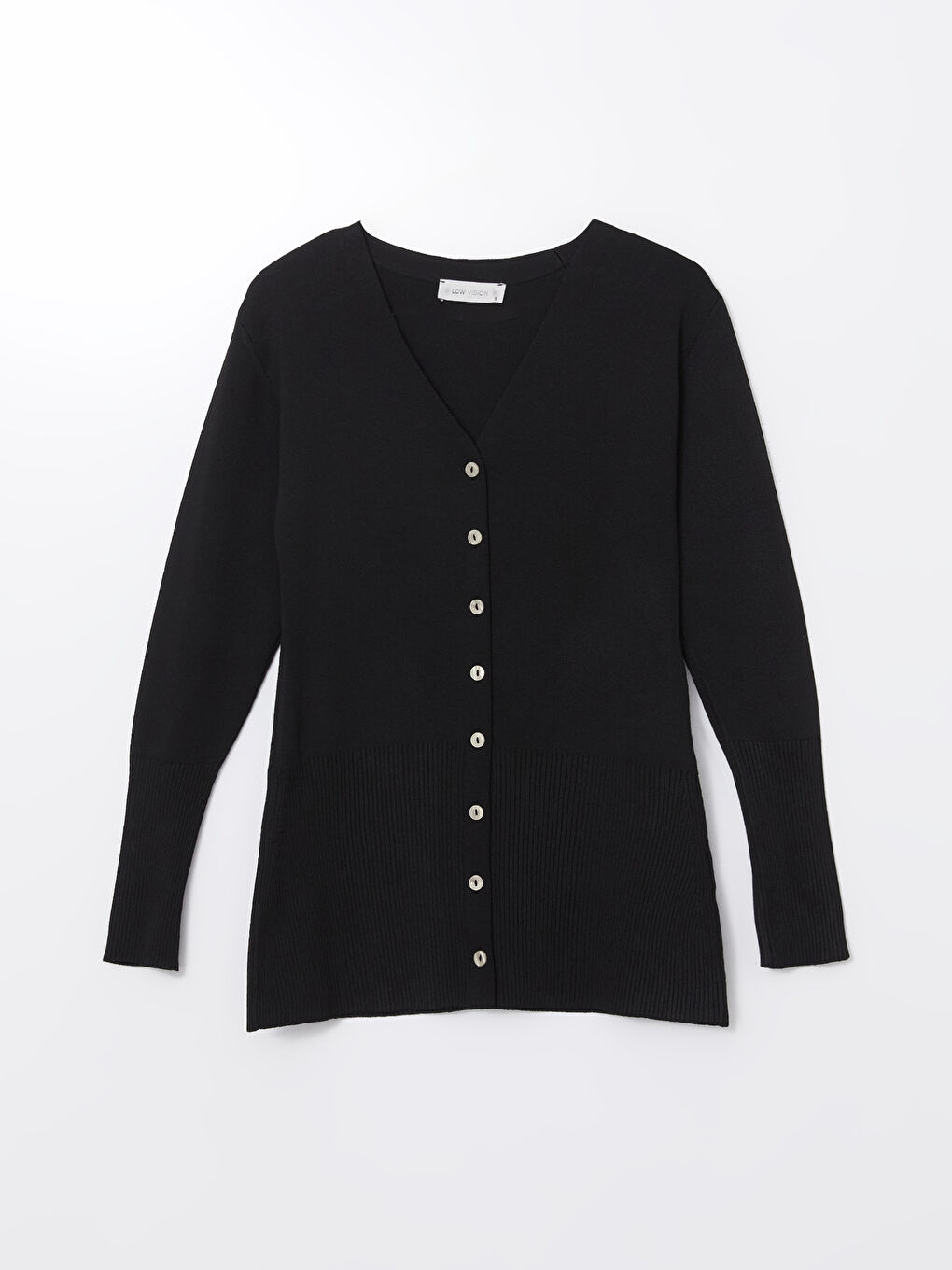 ژاکت آستین بلند ساده یقه V، ساخته شده از پارچه بافتنی. جزئیات آجدار روی مچ دست و پایین باعث می شود ژاکت کش باف پشمی ظریف تر به نظر برسد و از سرمای هوا جلوگیری می کند. با طراحی بسته شدن دکمه جلویی، استفاده عملی و آسان را فراهم می کند.